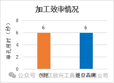 根據(jù)圖表信息顯示,在同一個加工環(huán)境下,在刀具壽命上,進口品牌應用壽命為120米,創(chuàng)恒S鉆應用123.6米,比進口品牌的壽命延長了3.6米。相比較下,創(chuàng)恒S鉆的性價比更高,既提升了刀具壽命,又為客戶實現(xiàn)了降本增效的經(jīng)濟效應。