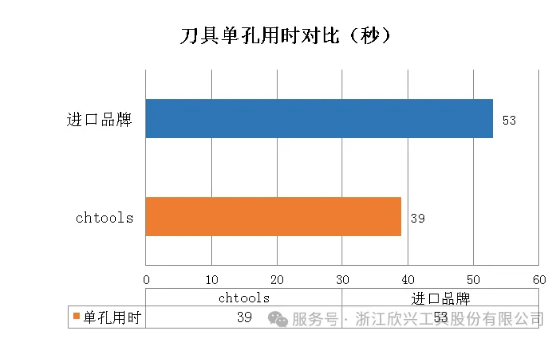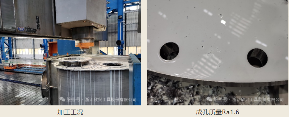 加工結果令人振奮。原進口皇冠鉆轉速 350r/min,進給 35mm/min,單孔用時 53 秒。創恒S鉆轉速 500r/min,進給 50mm/min,單孔用時 39 秒,比原進口皇冠鉆少用時14秒,并解決了崩刃問題,成孔粗糙度達 Ra1.6,孔徑公差 +0.03mm。綜合來看,使用 S 鉆后,同比效率至少提升 35%以上,產品服務有了保障,性價比明顯提升。