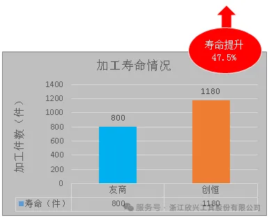 創恒外冷整硬鉆宛如一位低調的“高手”登場。它在測試中的表現堪稱驚艷,壽命如同被注入了強大的活力,大幅提升 47.5%,效率也不甘示弱,提升了 5.5%。這一提升,不只是數字的跳躍,更是為企業的加工成本實實在在地“減負”。